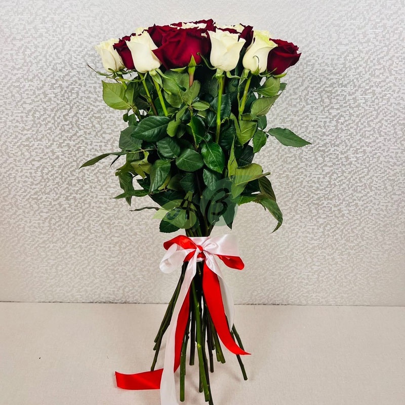 Букет "25 красных и белых роз" Премиум (70 см)