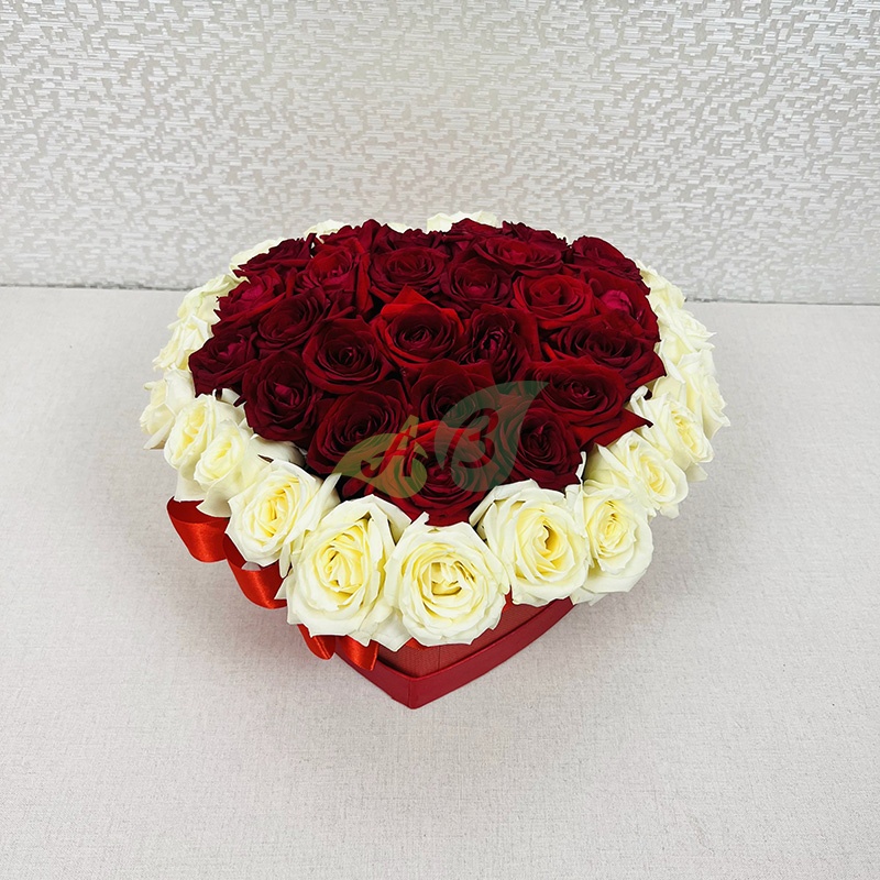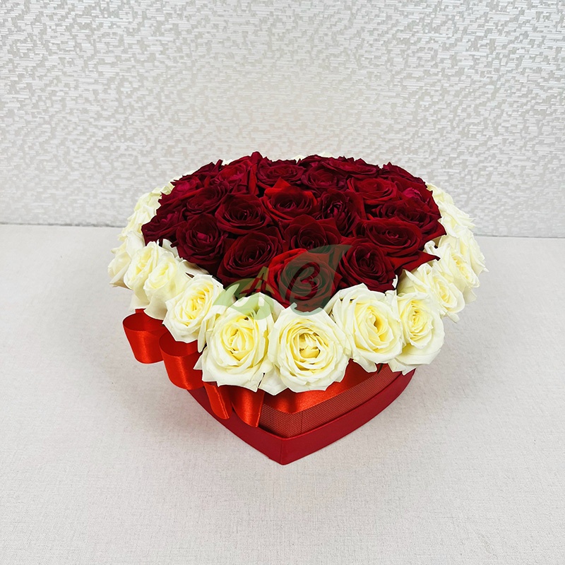 Если дарить цветы в коробке на праздник, то, несомненно, заказывать розы. Доставка этой шикарной композиции из красных и белых роз будет бесплатной по Кудымкару.