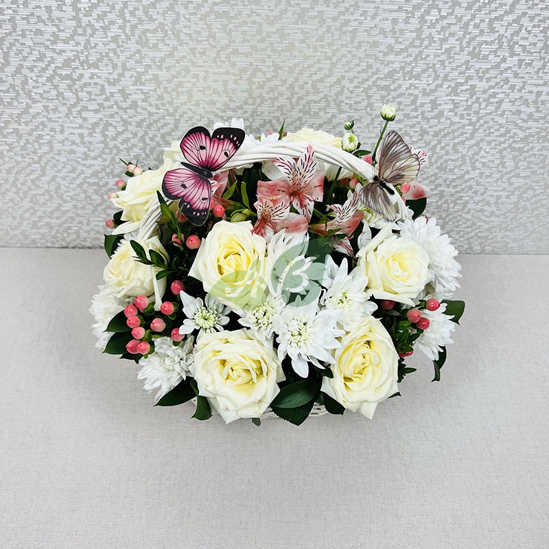 Корзина с белоснежными цветами
