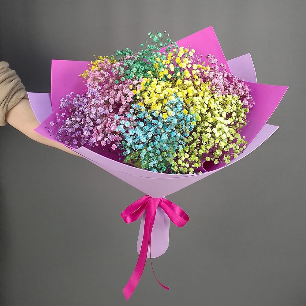 Состав и характеристики букета разноцветная гипсофила: